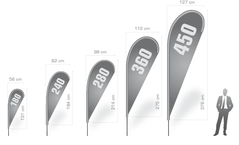 Optischer Vergleich von Mensch zu Beachflag Tropfen